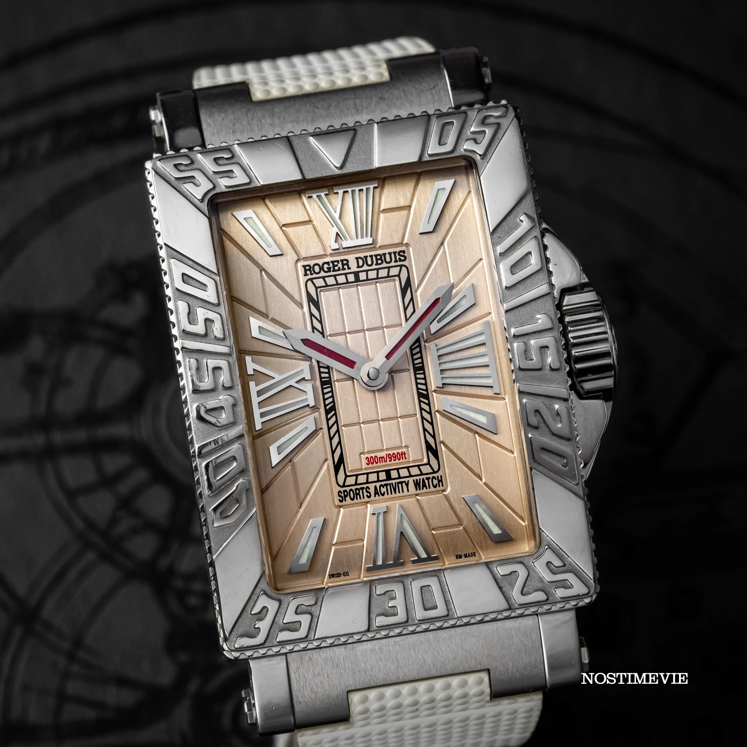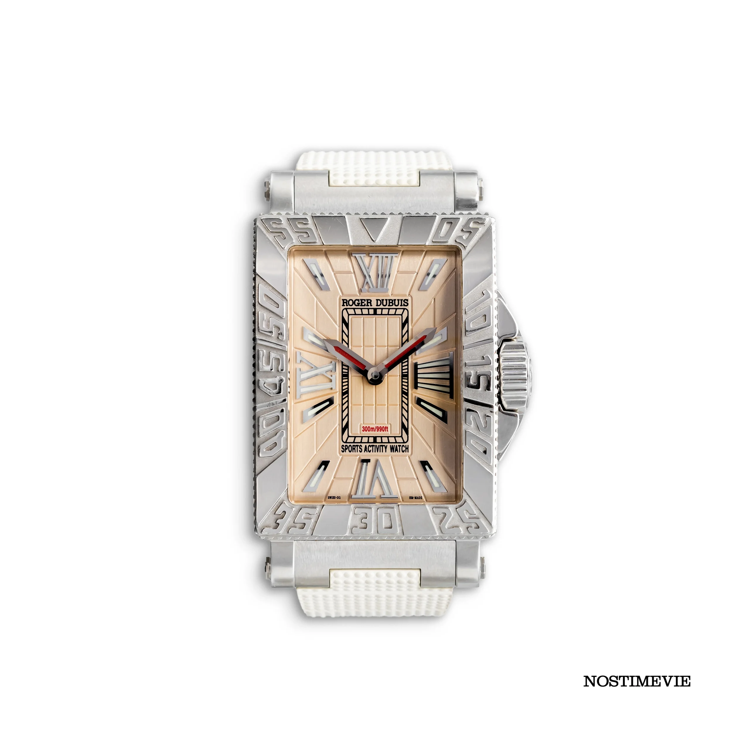 The Roger Dubuis Just For Friends MS34 21 9 1253 is a striking blend of luxury and sportiness, designed for those who appreciate bold aesthetics and high-performance craftsmanship. Featuring a 34 x 46 mm stainless steel case, this timepiece exudes strength and sophistication. The intricate 3D dial design, with Roman numerals and luminous accents, enhances both depth and readability, while the large engraved bezel adds a rugged, adventurous touch.
